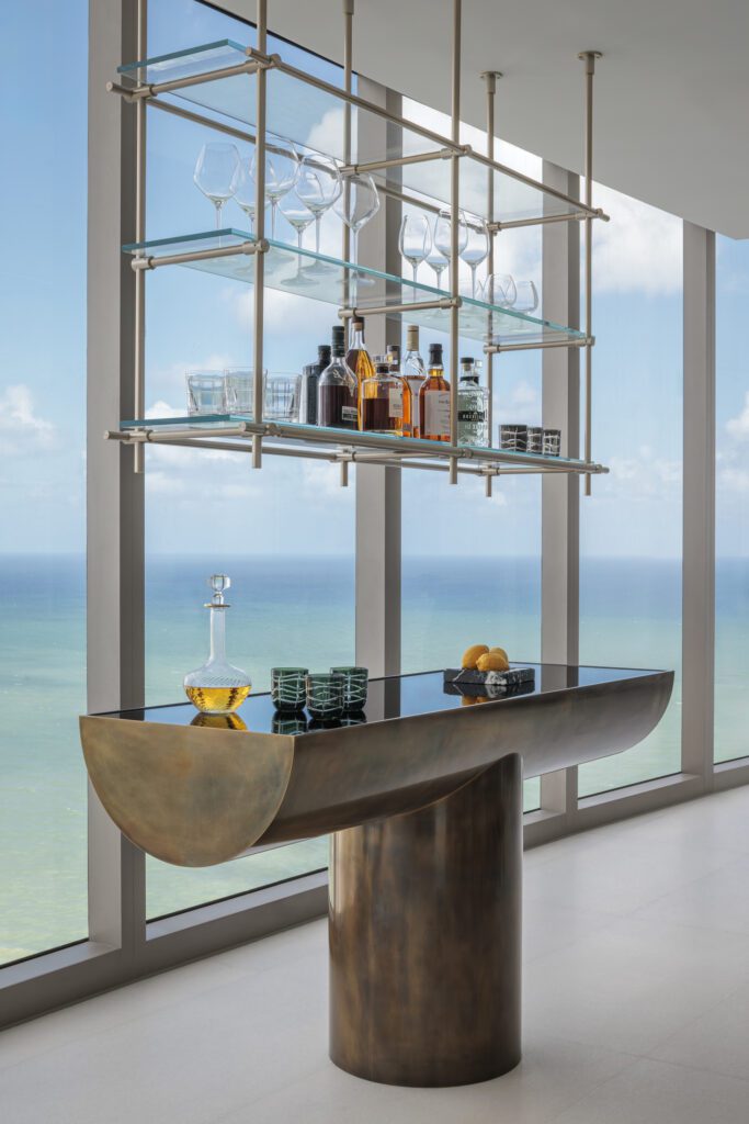 Most of the furniture in the apartment was custom-made in workrooms in New York. That includes work by artisans who work in wood, metal, and other media. Once the pieces were complete, a millworker flew down to Miami for their installation.