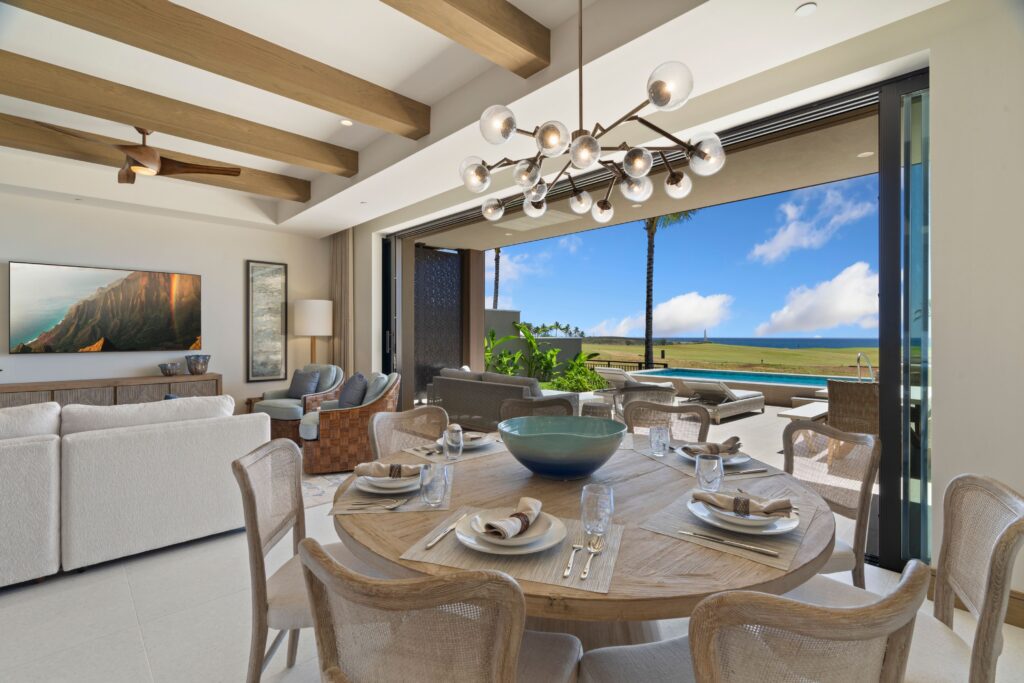 Set within the 450-acre Hōkūala resort, Timbers Kaua‘i – Ocean Club & Residences stands as the island’s premier oceanfront community—and the only residential property on Kaua‘i honored with the MICHELIN Key Award in both 2024 and 2025. The newest offering, Lāola Nani 3003, is a four-bedroom, four-and-a-half-bath townhome perched above the 15th fairway of the Ocean Course at Hōkūala, perfectly capturing the essence of contemporary Hawaiian living.