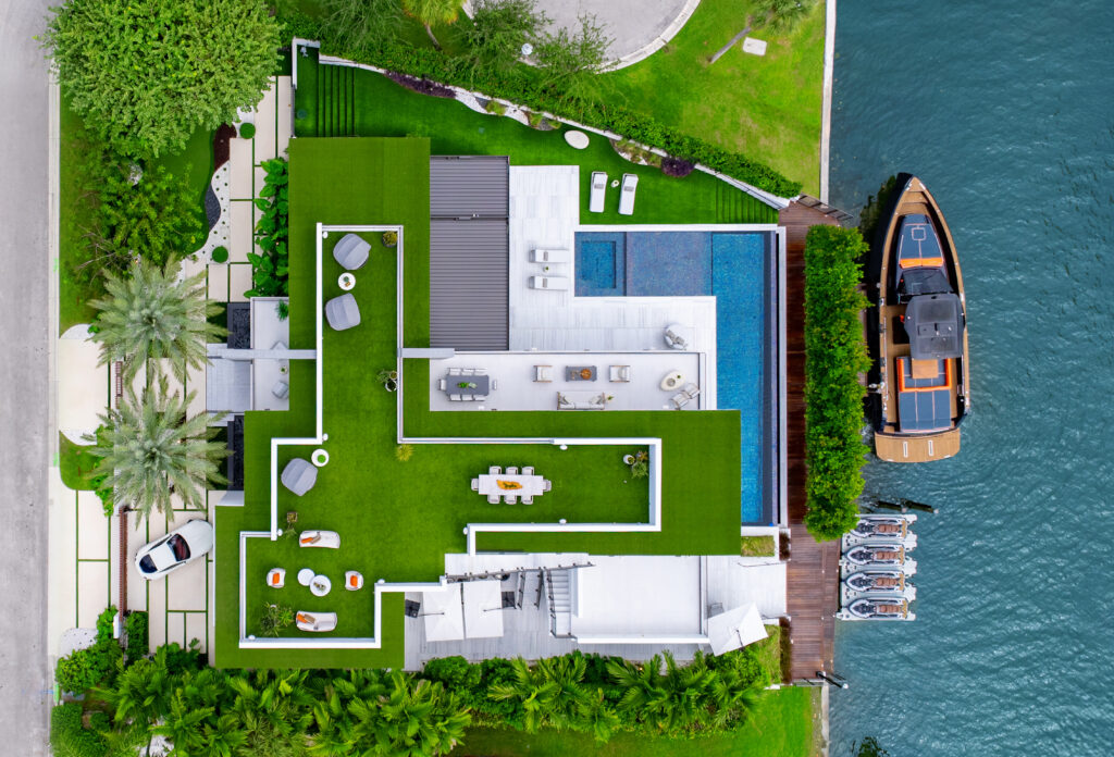 In one of Miami’s most private and exclusive enclaves, Casa Moderne offers a fully furnished, move-in-ready lifestyle with panoramic water and skyline views. Located on a quiet cul-de-sac in the gated Bay Point neighborhood, the residence spans 7,252 square feet of living space on a 13,532-square-foot waterfront corner lot—and includes the rare distinction of being the only home in Bay Point permitted to feature a rooftop terrace.