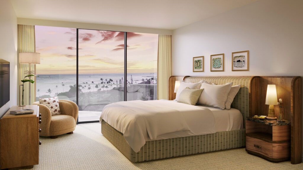 The redesign will seamlessly blend heritage and modernity under BOS Studio’s vision, with support from Brooklyn-based Guerin Glass Architects. Honoring the building’s history while embracing a globally inspired aesthetic, the project will feature custom-designed furniture and Hawaiian-inspired design elements throughout. Strategic updates will curate a sophisticated yet understated design that reflects Waikīkī’s natural beauty and cultural richness.